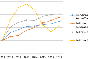 Erstmalig wurde der Kostenindex für den Textilservice vom DTV und von WIRTEX gemeinsam erstellt. Das Jahr 2017 zeigte mit einem Indexanstieg von fast zwei Punkten den stärksten Anstieg seit 2013.